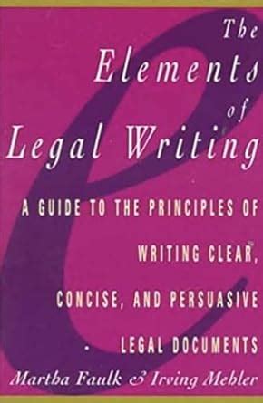 Elements of Legal Writing: A Guide to the Principles of Writing Clear, Concise, by Martha Faulk, Irving M. Mehler 4.22 · Rating details · 9 ratings · 0 reviews Filled with before-and-after examples and illustrations from the legal world, here's a quick reference for lawyers, paralegals, law students, or anyone in the legal profession